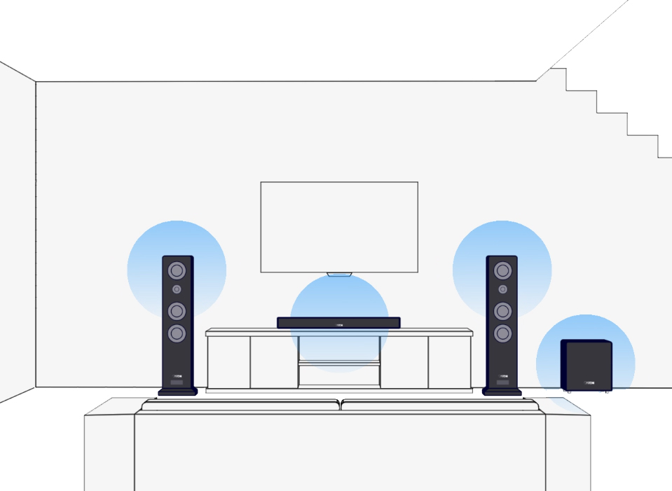 Вы можете комбинировать динамики с сабвуфером и объемными колонками для полноценного 7.1.2 Dolby Atmos или собирать более компактные системы — всё зависит от ваших предпочтений и размеров комнаты.
